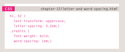 letter-spacing, word-spacing